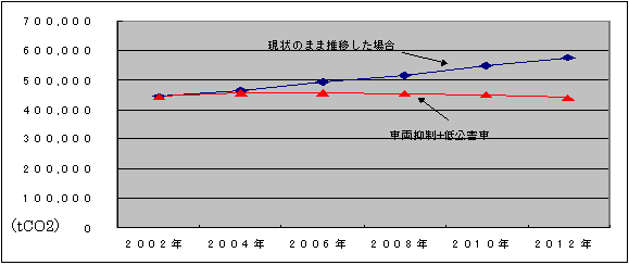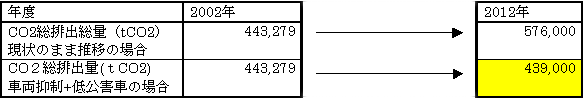 | 上記対策を実行することによって、2012年のCO2排出量は、02年度と比較して総量で99%に抑制することができます。 |