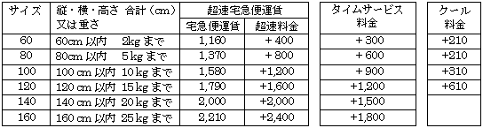 宅急便/宅急便タイムサービス/クール宅急便/コレクトサービス/ゴルフ宅急便/スキー宅急便 |