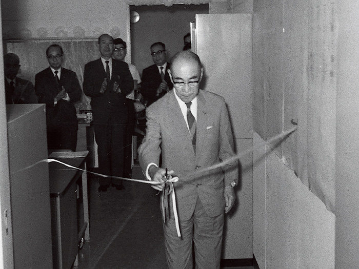 コンピュータ室開室式での小倉康臣社長(1969年6月16日)