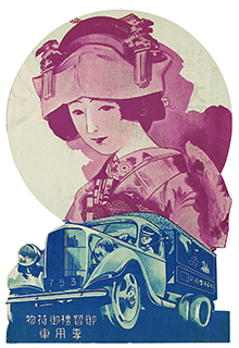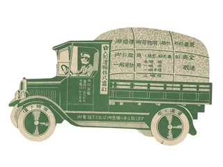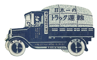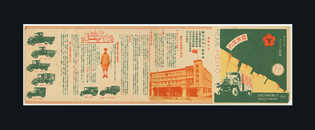 1930年代_トラック定期便の案内パンフレット(運転手や車両を紹介した表面)