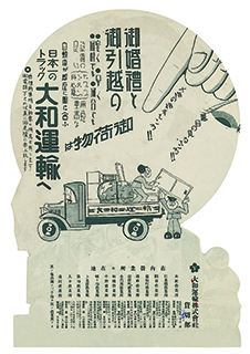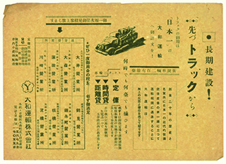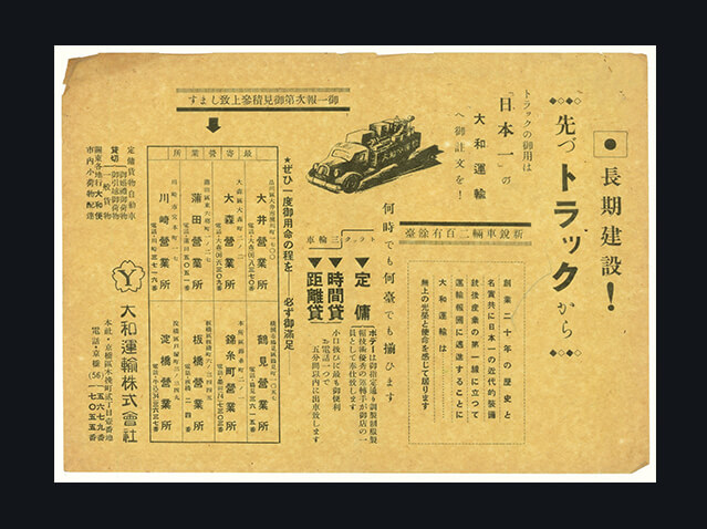 1940年頃_チラシ「長期建設!先づトラックから」は、戦時統制が次第に強化された時代色を反映したものか。