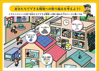当社の環境の取り組みをクイズ形式で伝えた後、ワークシートを使用したグループワークをおこない、子どもたちが自分でできる環境の取り組みを考える授業です。子どもたち一人ひとりの地球にやさしい行動の積み重ねが地域の環境保全につながることを学び、子どもたちが環境に取り組むきっかけとなることを目指します。