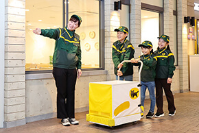 キッザニア福岡では、近年のEC利用の拡大とともに多様化するニーズに合わせ、駅やスーパーなどお客さまの生活導線上に設置されているオープン型宅配便ロッカー「PUDOステーション」を用いたアクティビティを新たに導入し、非対面・非接触の集配を体験できます。