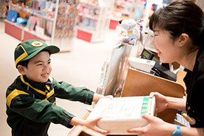 未来を担う子どもたちが社会の仕組みや働くことの目的を理解する機会創出のため、2006年キッザニア東京のオープン当初より、宅急便の集配業務を行う「セールスドライバー」の仕事が体験できる「宅配会社」パビリオンを出展しています。セールスドライバーの仕事を通じて、人と人とのコミュニケーションやチームワーク、思いやりの大切さを理解し、任された仕事を最後までやりぬくことの重要さを知るお手伝いをしています。