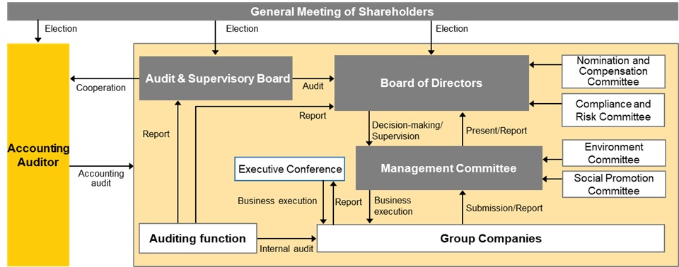 The current status of provision for oversight of business execution and management, internal control and related functions at Yamato Holdings is illustrated in the figure below.