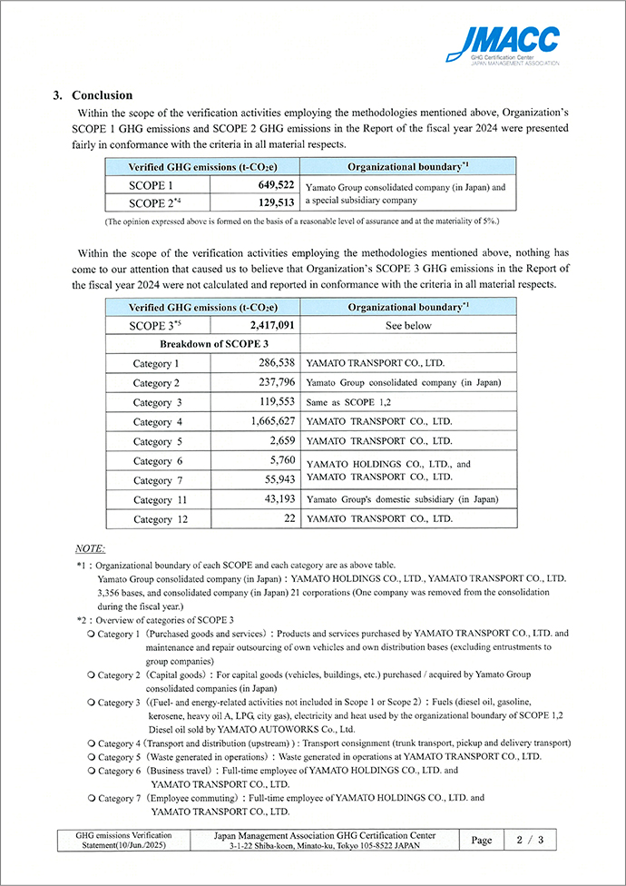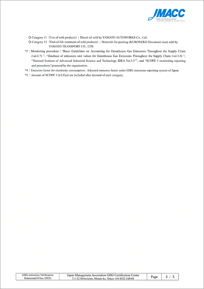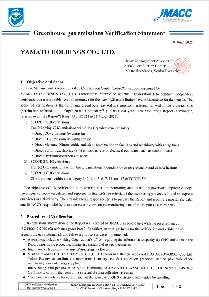 | ISO 14068-1:2023 (product carbon neutrality) | Yamato Transport Co., Ltd.’s three TA-Q-BIN services (TA-Q-BIN, TA-Q-BIN Compact, and EAZY) | 2024 |