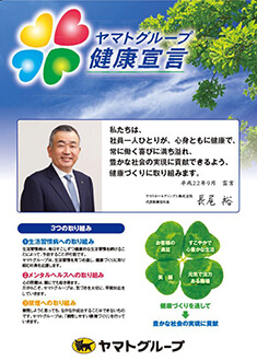 In September 2010, the Yamato Group formulated the Yamato Group Health Declaration with the aim of enhancing each employee's health and contributing to the creation of a more enriched society. Based on this, the Yamato Group Health Insurance Union has implemented various health strategies relating to the health of employees and their families, and provided support for health and productivity management to be implemented by each Group company.