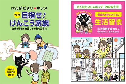 In addition to Kenpodayori, a public relations magazine that delivers health information for families four times a year (in spring, summer, fall and winter), we also publish Kenpodayori Kids for families with elementary school children twice a year, to coincide with the summer and winter vacation. This is a 10-day challenge for children to learn about the importance of health and lifestyle habits from elementary school, and for the whole family to work on lifestyle improvement. In this way, we are working to increase the number of healthy families aiming to improve their health as a whole family.