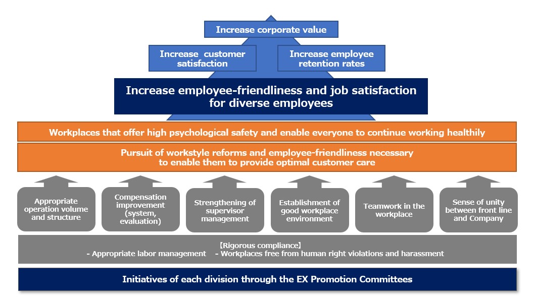 Each and every Yamato Group employee thinks from the customer's point of view, making decisions and acting on their own initiative. The coming together of its employees is the source of the Yamato Group's power. This is the DNA that we have inherited from generation to generation. A major prerequisite for all-inclusive management is a workplace environment where employees can work actively, and we believe that creating such an environment is the most important issue for management.