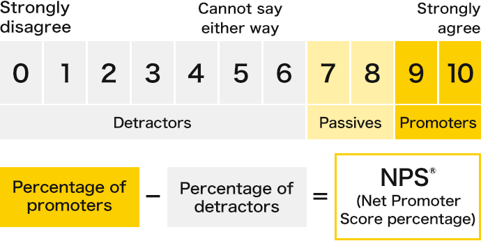 - *NPS® (Net Promoter Score) is a customer loyalty index that scores customer loyalty (trust, attachment and favorable impressions) to a company's products and services numerically using an 11-step scoring system (0-10).