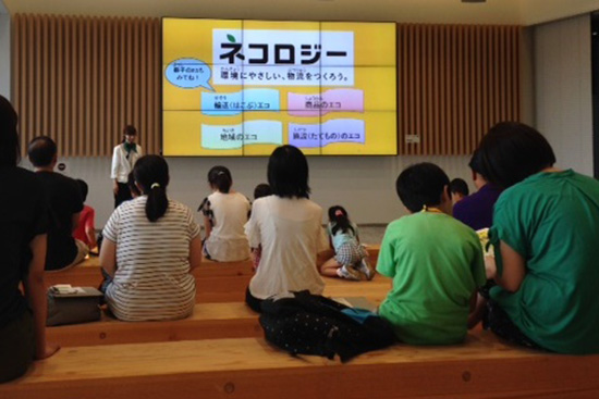 ヤマトグループで取り組む環境保全活動である「ネコロジー」について、羽田クロノゲートで取り組むゼロエミッション(リサイクル)のクイズや太陽光パネルの見学を通して学びました。