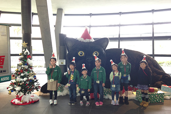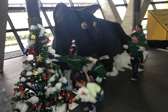 クリスマスに向けて、受付棟に展示されている巨大なクロネコでクリスマスのフォトブースを作りました。