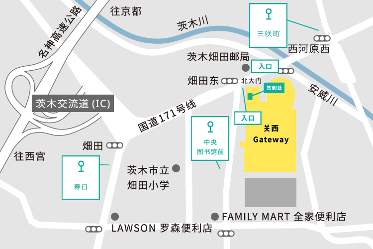 签到处在关西Gateway的一楼。请穿越马路前来。