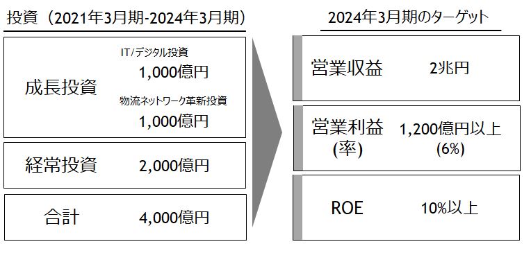 中長期的(2024年3月期)に、営業収益2兆円、営業利益1,200億円以上、ROE10%以上をターゲットとしますが、2021年3月期は経営体制の移行期間とし、主要経営指標等を含む詳細な中期経営計画(2022年3月期~2024年3月期)を、2021年1月に改めて発表する予定です。
