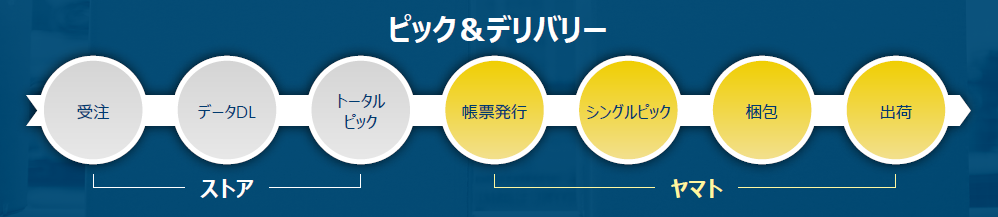 お客さま倉庫で当日発送の対象商品をトータルピックしていただき、その後ヤマトグループのネットワーク上で、ピッキング、梱包、出荷、配送を行うサービスです。