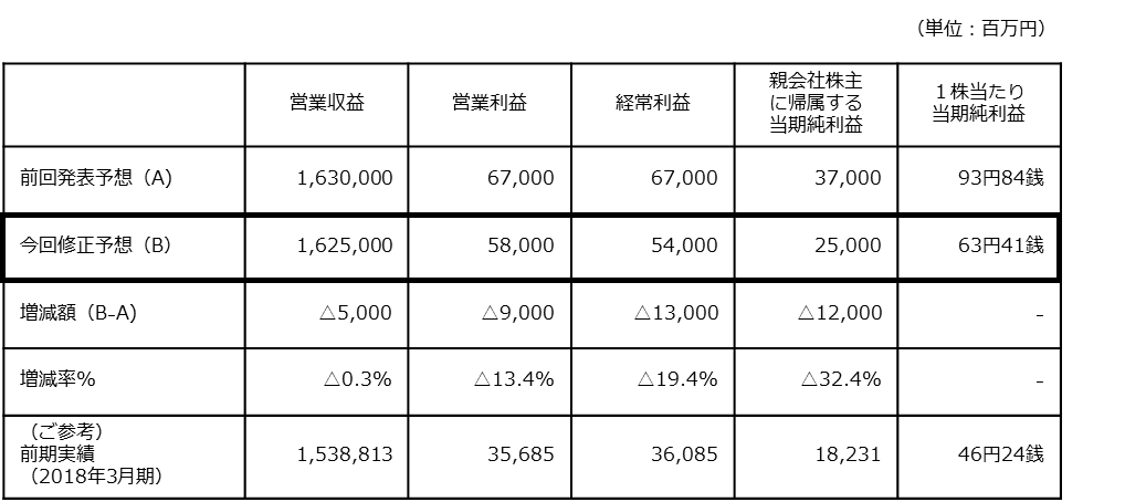 1.2019年3月期 通期連結業績予想の修正(2018年4月1日 ~ 2019年3月31日)