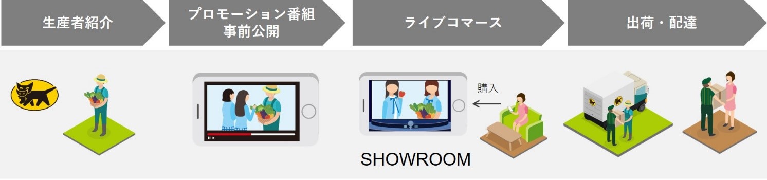 新型コロナウイルス感染症拡大で、ステイホームやテレワークを中心とした新しい生活様式が浸透し、お客さまはECサイトで商品を購入する機会やSNSなどデジタル上でコミュニケーションを行う機会が増えています。一方、コロナ禍において国内消費は落ち込み、農家など地場産業の生産者は危機感を持っています。今回、ヤマトグループが持つ物流ネットワークとSHOWROOMが持つライブコマースプラットフォームを融合し、商品の裏側にある生産者の想いまでを伝える “ストーリーライブコマース”を通じて、生産者に新たな販路を提供する取り組みを開始します。