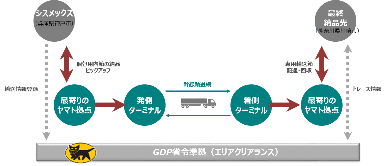 ヤマトホールディングス傘下のヤマトロジスティクス株式会社(本社:東京都中央区、代表取締役社長:小菅 泰治、以下「ヤマトロジスティクス」といいます)とシスメックス株式会社(所在地:兵庫県神戸市中央区、代表取締役会長兼社長 CEO:家次 恒、以下「シスメックス」といいます)は、個別化医療※1の更なる進展を視野に、低温~超低温帯の遺伝子検査用試薬※2の輸送におけるロジスティクスの実用化に向けて実証実験を行いました。本実験では、専用輸送箱を活用した混載輸送を前提に、GDP※3に準拠した品質管理およびコストに関する検証を行いました。