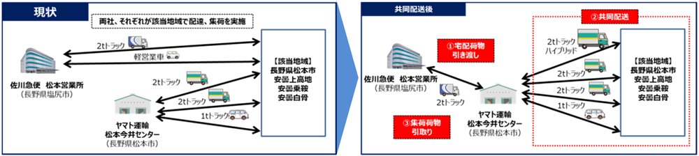(ii)ヤマト運輸松本今井センターが両社の対象地域への荷物を集約して配達する。