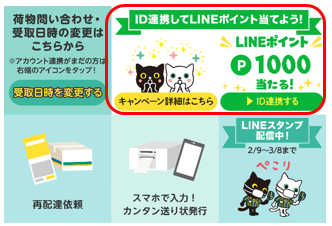 さらに初めてのクロネコID連携で、LINEポイント1,000ポイントが当たるキャンペーンを実施!