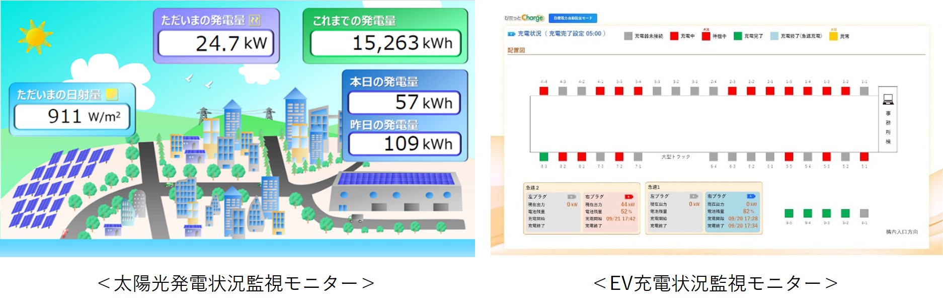 1.背景および目的八幡営業所は、全国で初めて、全車両EVで稼働する営業所です。太陽光発電設備と蓄電池を導入し、日中発電した電力で、EV充電や建屋電力の一部※を賄います。また、電力平準化システムにより、夜間のEV一斉充電による電力使用ピークの偏りを緩和するなど、エネルギーマネジメントを行うことで、サステナブルな物流を実現します。