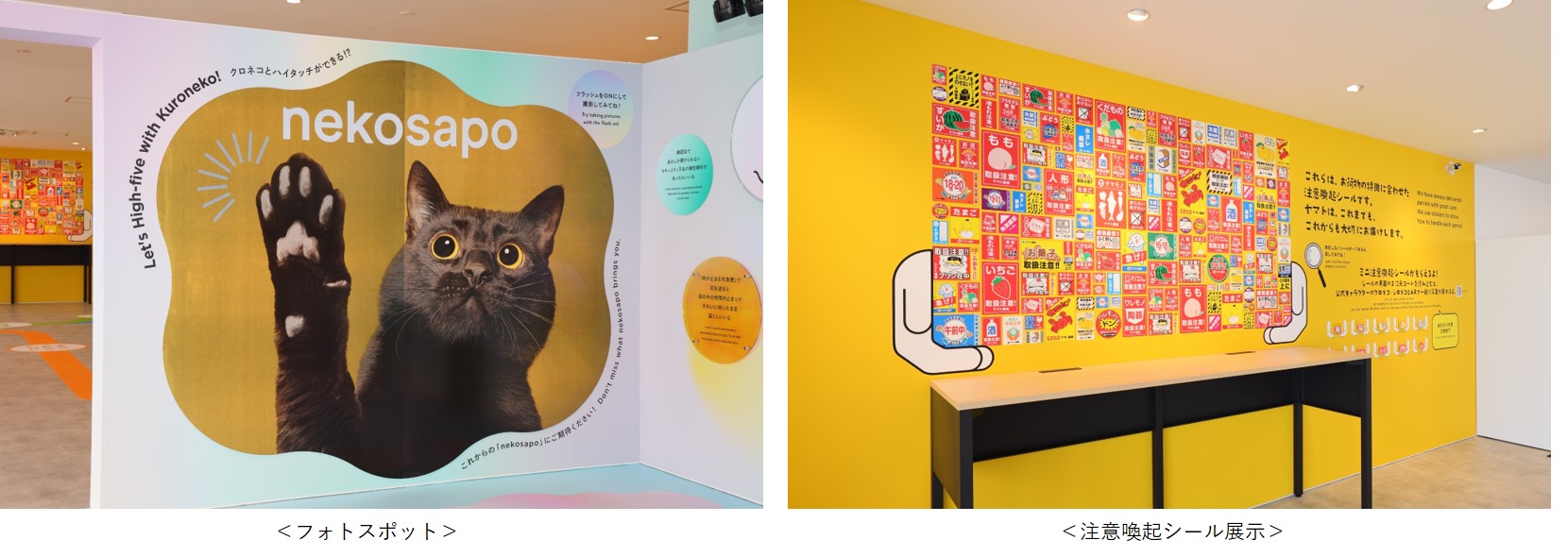 壁面を背景にフラッシュ撮影すると、クロネコとハイタッチしている写真が撮れるフォトスポットです。