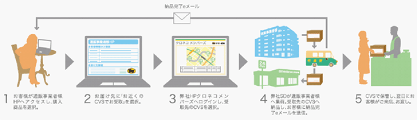 このたび、お客様がさらに便利にネット通販をご利用いただけるように、ネット通販で商品をご購入時に、受け取り先としてコンビニエンスストアを指定して24時間商品を受け取ることができる「宅急便受取場所選択サービス」を開始いたします。