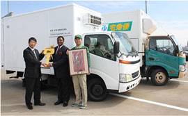 このたび、ヤマト運輸は駐日マラウイ共和国大使館の要請を受け、社会貢献活動の一環として宅急便の集配で活用していた車両を贈呈いたしました。クール宅急便を取り扱っているヤマト運輸のトラックは常温スペースのほか冷凍・冷蔵庫を保有しており、OVOPの活動やムッジ村改革促進プロジェクトの商品・農水産物などの輸送のために、マラウイ共和国全土や隣国で活用される予定です。