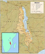 マラウイ共和国はアフリカ南部に位置し、ザンビア、タンザニア、モザンビークに挟まれた内陸国で、リロングウェを首都としています。面積は11万8480平方キロメートルで、ほぼ北海道と九州と合わせた大きさです。人口は1320万人、公用語は英語とチェワ語です。タバコ・紅茶・繊維製品・砂糖・綿花・コーヒー・マカダミアナッツなどが主要輸出品目です。