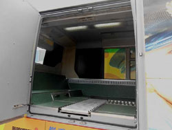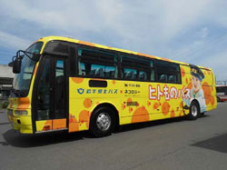 「都市間路線バス」と「重茂路線バス」に一定量の宅急便を積載できるように、車両後方の座席を減らして、荷台スペースを確保しました。荷台スペースには専用ボックスを搭載し、その中に宅急便を入れて輸送します。「都市間路線バス」には「ヒトものバス」と銘打ったラッピングをしました。 |