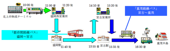 | (2) | 岩手県北バスが運行する「都市間路線バス」と「重茂路線バス」で宅急便を輸送 | ||||||