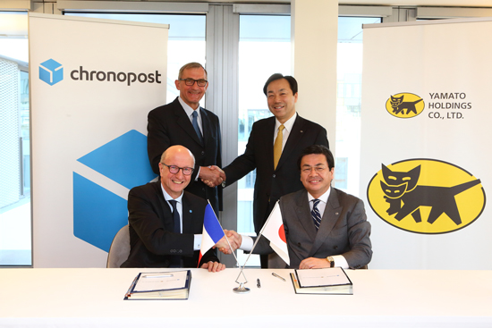 Chairman of Geopost Paul Marie Chavanne、ヤマトホールディングス社長 山内雅喜、ヤマトホールディングス上席執行役員 梅津克彦、President of Chronopost Martin Piechowski