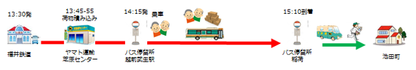 越前市と池田町を結ぶ路線バスを利用して宅急便を輸送します。