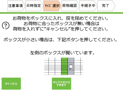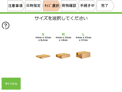 [5]荷物のサイズに応じて、ボックスのサイズを選択します