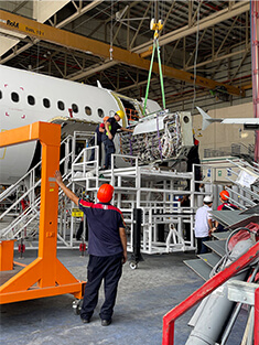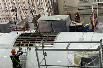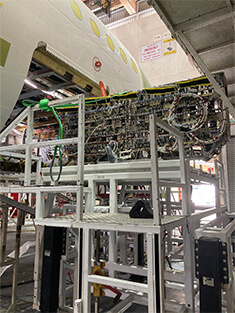 メインデッキカーゴの床の梁を1本ずつ交換します。これまでの旅客機よりも重たい貨物を搭載するために必要な補強改修です。