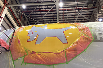 胴体の塗装では、「シルバーマイカ」という特別な塗料を使用します。機体はつやのある仕上がりになる予定です。塗りすぎると重量がかさみ、燃費が悪化しますが、薄すぎると外板に腐食が起きてしまうため、本当に難しい作業です。