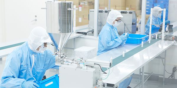 化粧品容器への充填、ラベル貼り、包装など、製造の最終工程から物流までをワンストップで支援。
